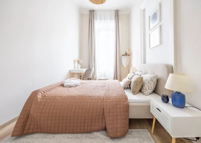 Una cocina tiene un lavavajillas y un horno que permite a los huéspedes cocinar sus propias comidas. El aeropuerto Budapest-Ferenc Liszt está a 31 minutos en coche, y la parada de autobús Marko utca, a 150 m de este apartamento. El Central Harmony Apartment On St' Stephen Boulevard cuenta con una terraza, asegurando una comodidad óptima.